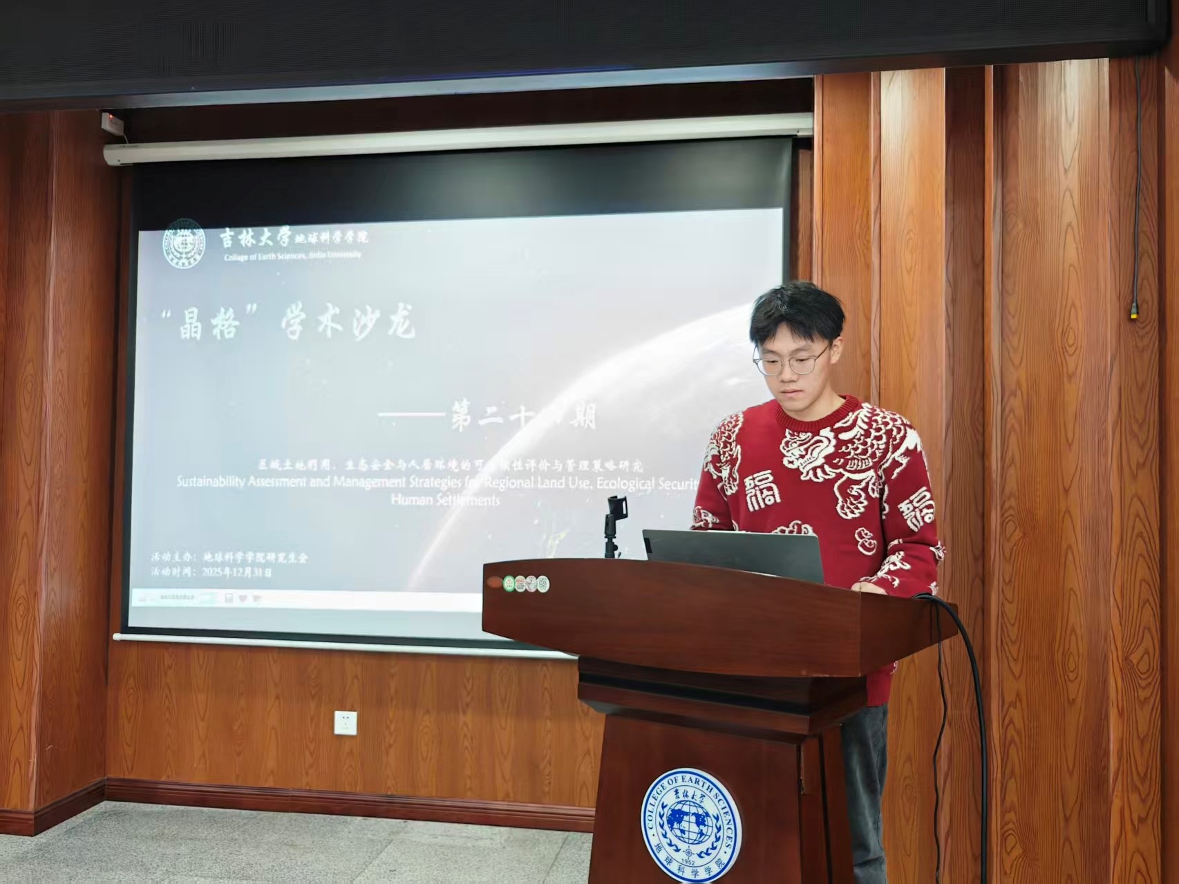 于2025年12月31日在鸽子楼108-1教室举办了以“区域土地生态与人居环境可持续评价管理”为主题的第二十四期研究生“晶格”学术沙龙活动。